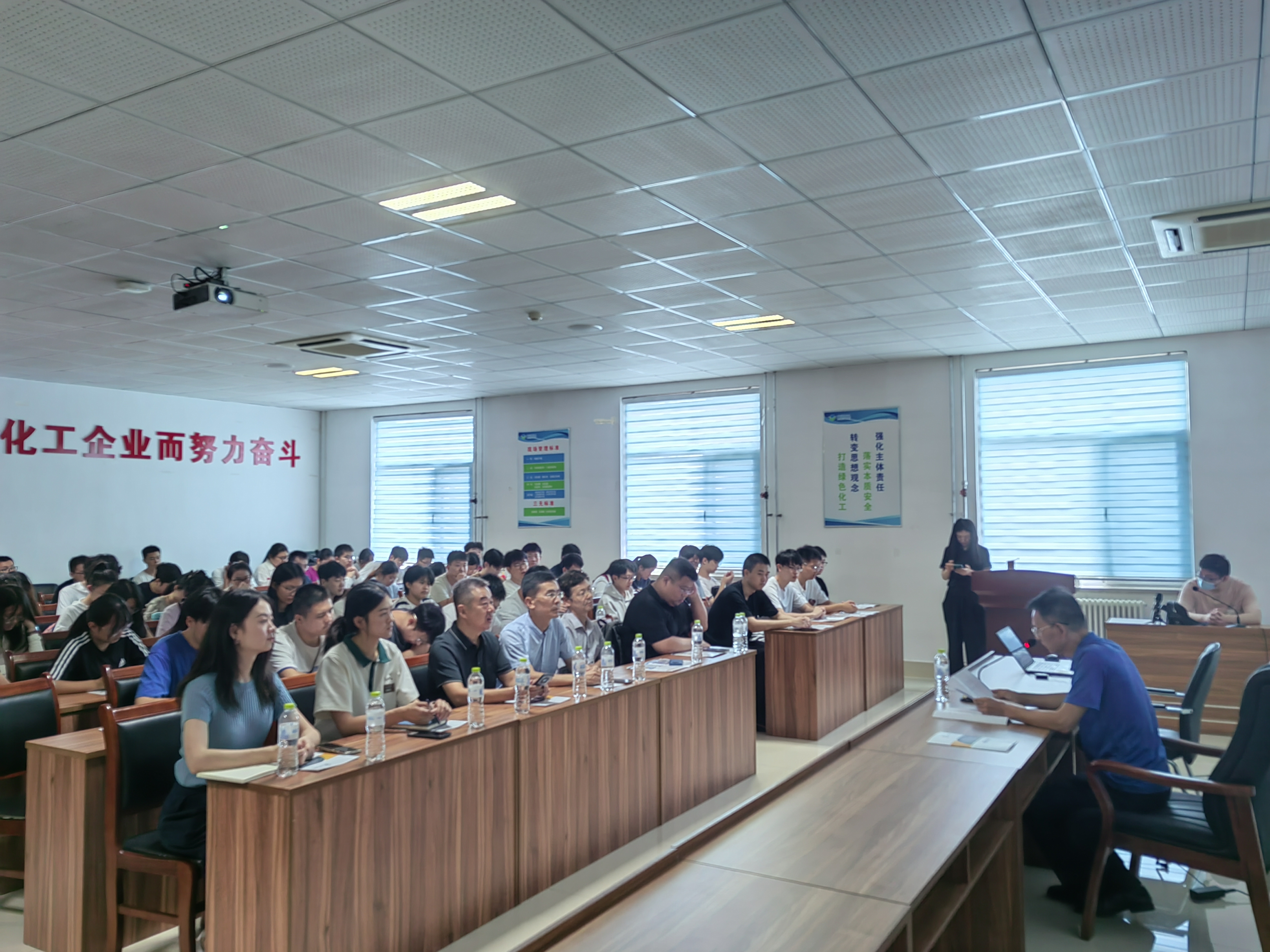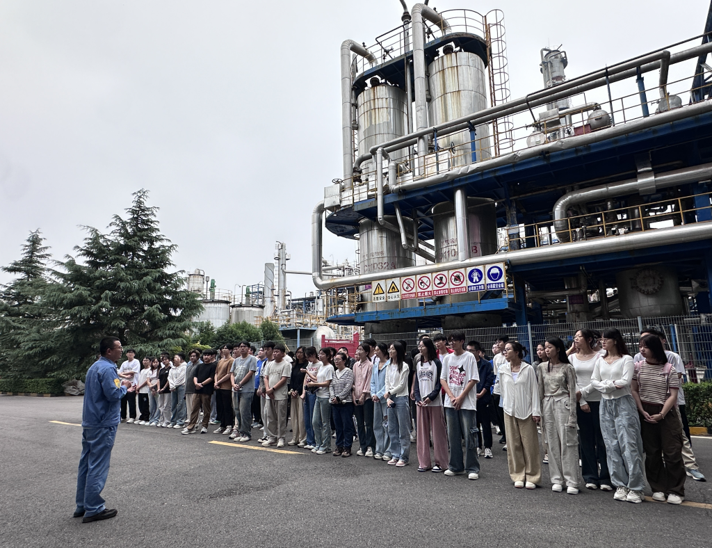 w66利来旗舰厅师生乘车来到齐翔腾达北区工业园,化工二厂、三厂负责人分别向大家介绍厂区环境、生产装置、生产工艺流程等概况。