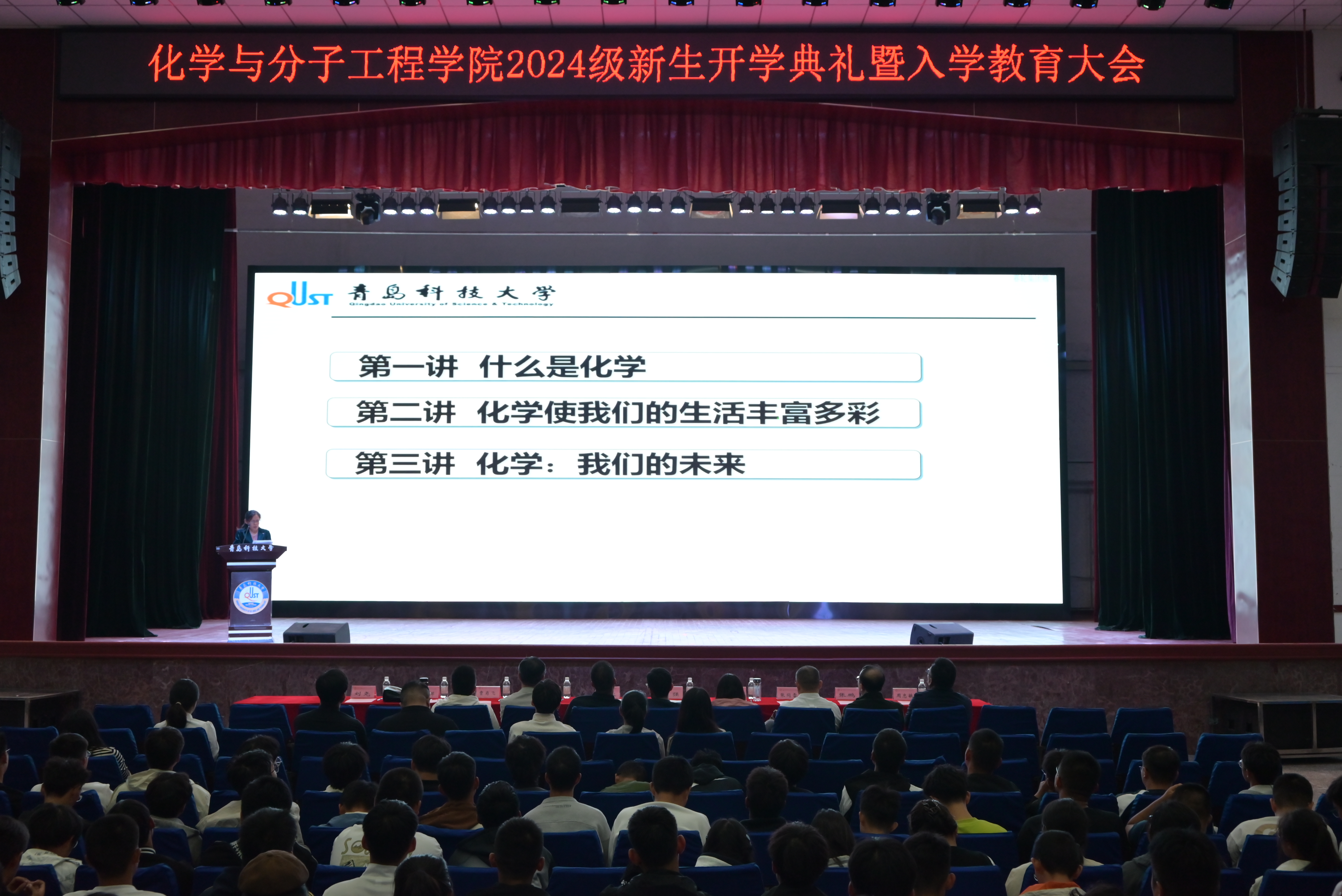 青岛市教学名师于跃芹教授以“化学,让生活更美好”为题,为2024级新生上开学第一课,她从“什么是化学”“化学使我们的生活丰富多彩”“化学我们的未来”三个方面展开叙述,于老师讲述了化学的独特魅力,鼓励同学们保持热情,专注科学,发现和创造更多化学之美,期盼同学们在w66利来旗舰厅学有所成,创造精彩,做惟真惟德化院人。