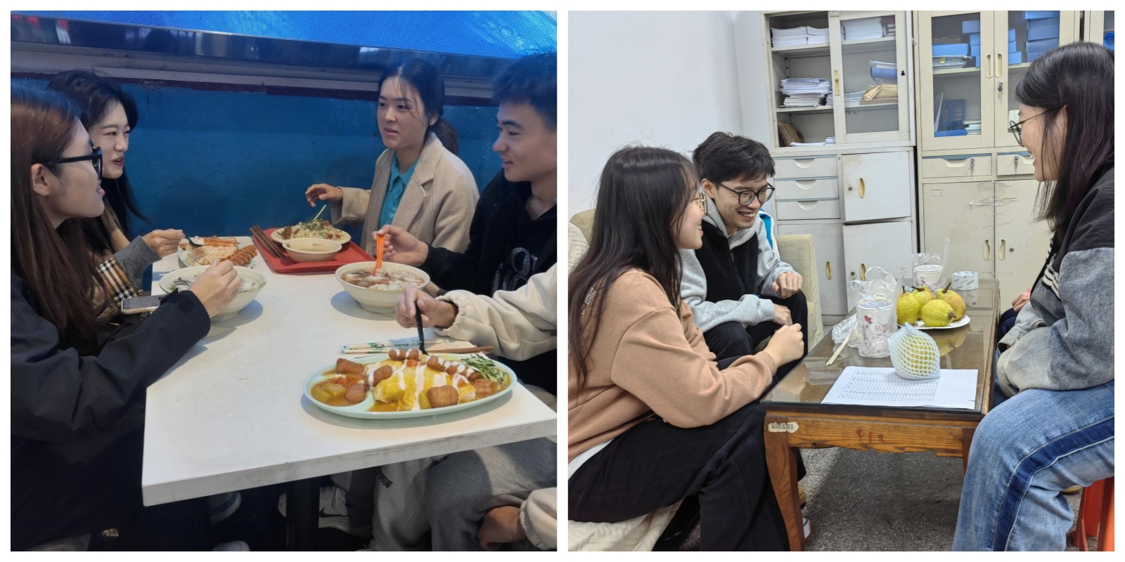 研究生辅导员徐鑫、大二辅导员刘涛与员工开展温馨午餐会。师生们围坐在一起,共享美食,畅谈人生,同学们纷纷分享着自己的生活点滴,师生们在忙碌的学习生活间隙进行放松和交流,充分增进彼此的了解和信任。