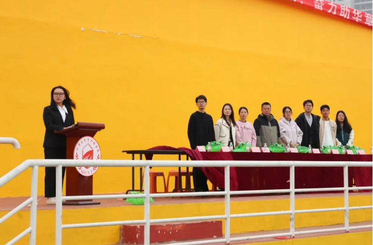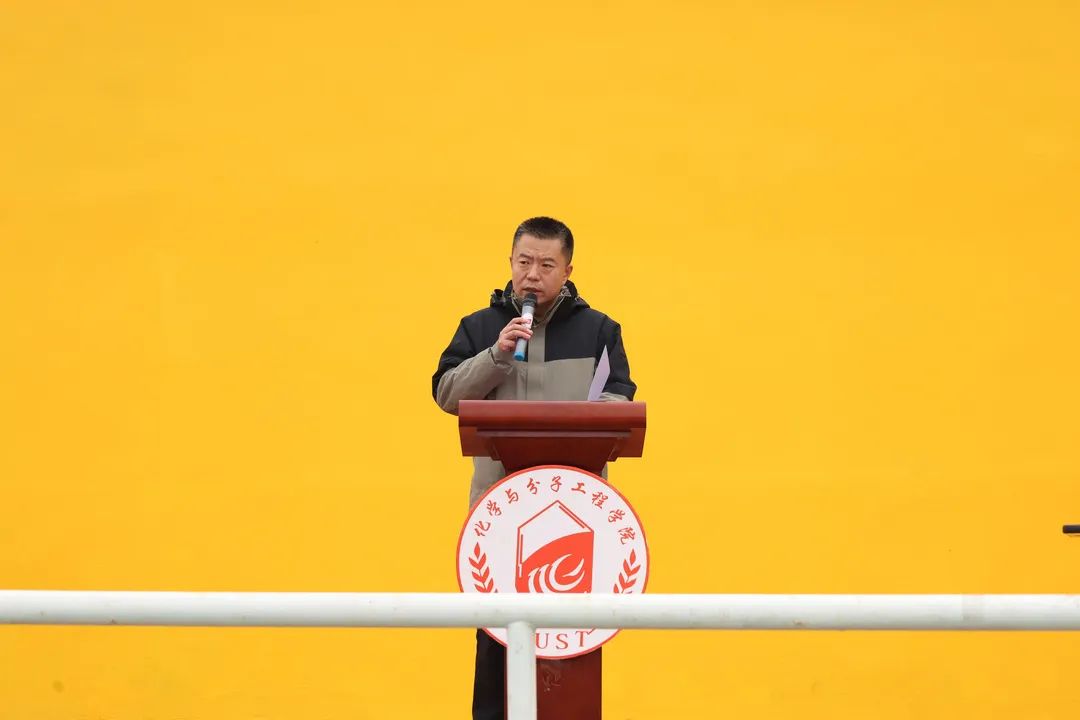 开幕式上,党委副书记兼副经理刘尧致开幕词,他表示希望通过本次运动会丰富同学们课余生活,丰富头脑、强健体魄,也希望同学们能够发扬“科大精神”、践行“橡胶品格”,并预祝本次运动会圆满成功。裁判员代表与运动员代表宣誓,表示将严格履行裁判职责、遵守比赛章程规定。国旗护卫队的同学手擎国旗、步履铿锵。辅导员陶亚亚老师宣布大会开幕,在迎风而飞的国旗与嘹亮的国歌声中本次运动会开幕。