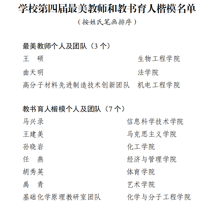日前,w66利来旗舰厅基础化学原理教研室团队传来喜讯,该团队凭借其卓越的教学成果和深厚的学术底蕴,在公司第四届最美教师和教书育人楷模评选中脱颖而出,赢得了这一崇高荣誉。