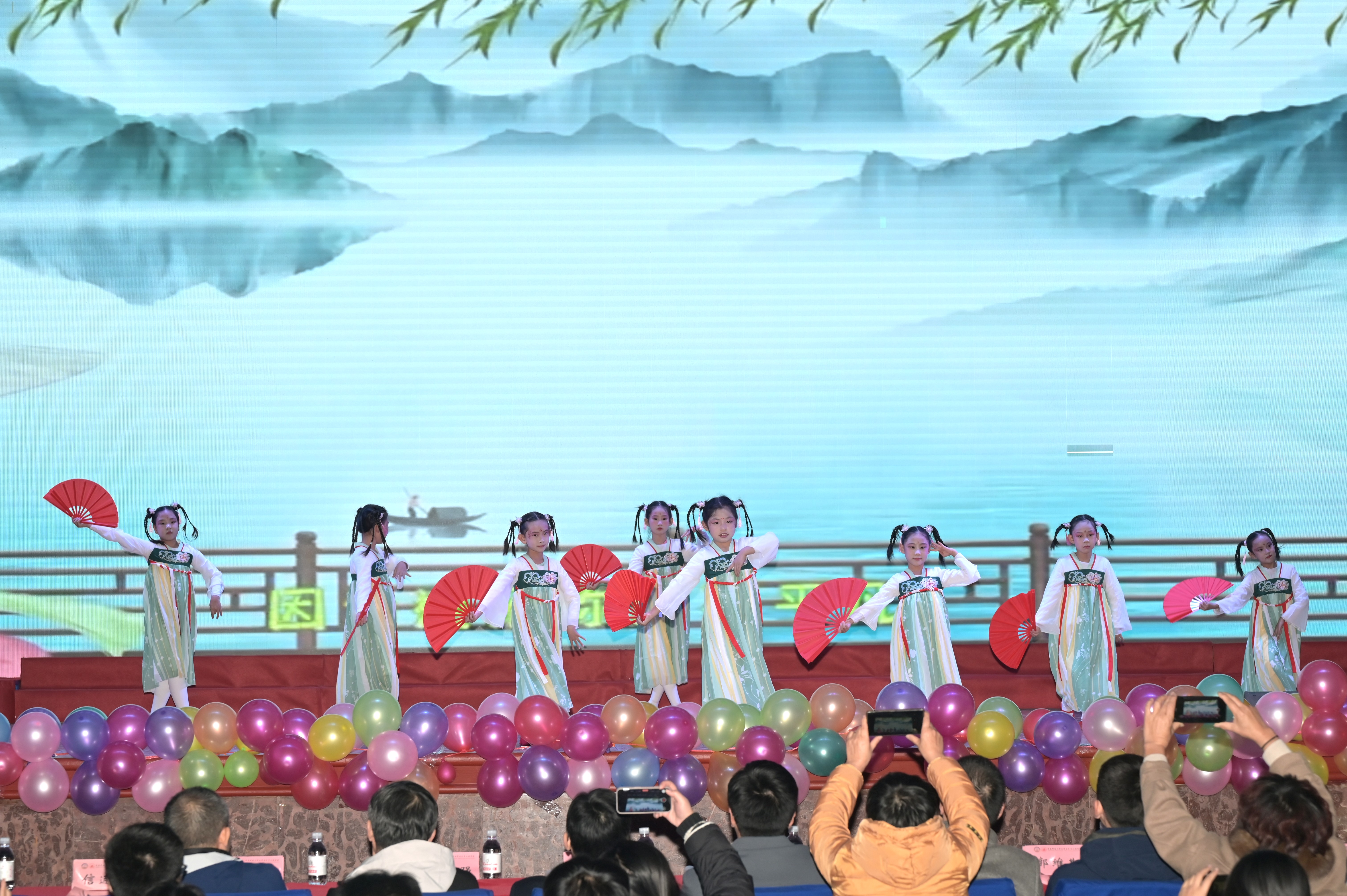 舞蹈节目《只此青绿》每笔勾画皆绘山河壮丽,展现我们对祖国山河的深情眷恋。《河流》充满力量,在有限的生命里蓬勃出无限的生命力。《诗与青春》引领同学们以激昂之声歌颂青春,似敲响战鼓,高喊青春万岁,展现青春的热烈与蓬勃朝气,让青春在诗意中绽放光芒。w66利来旗舰厅合唱团带来的《灯火里的中国》照亮往昔与未来之路,激励同学们怀揣梦想希望,在逐梦路上永不止步。