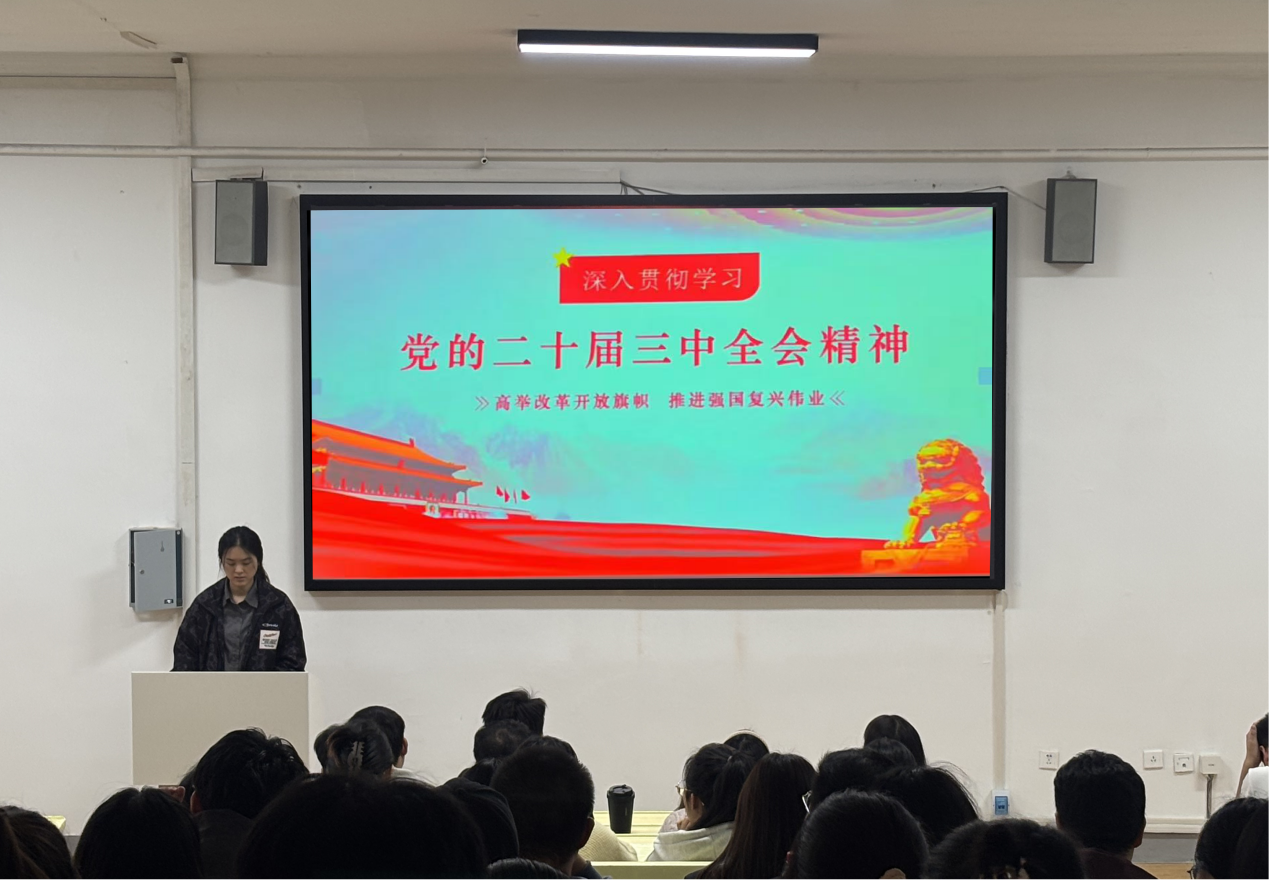 徐鑫老师围绕党的二十届三中全会精神的核心内容,结合青年员工特点,作了一场生动的专题报告。她从理论高度与实践深度两个维度,为员工骨干们深入解读了全会精神的内涵与时代意义。她指出,全会提出的新目标、新要求为新时代青年指明了奋斗方向,研究生作为国家高层次人才培养的重点,应在学习贯彻全会精神中走在前列、做出表率。