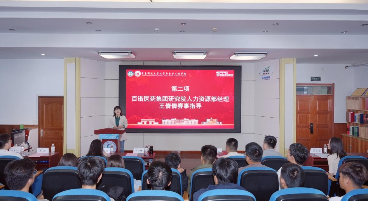 10月15日,公司携手山东百诺医药股份有限公司举行第三届“百诺医药杯”职业规划大赛启动仪式。山东百诺医药股份有限公司研究院人力资源中心经理王倩倩、公司招聘经理毛朝霞、公司党委副书记兼副经理刘尧、学工办主任兼团委书记闵繁盛,以及辅导员代表王森、马晓风出席仪式,为大赛拉开序幕,助力学子明晰职业方向,做好职业规划。