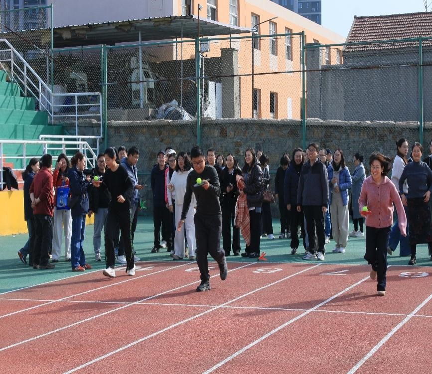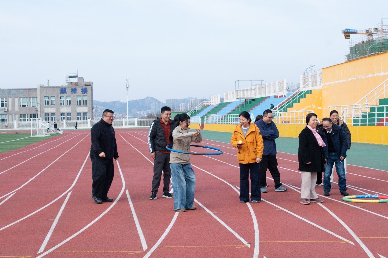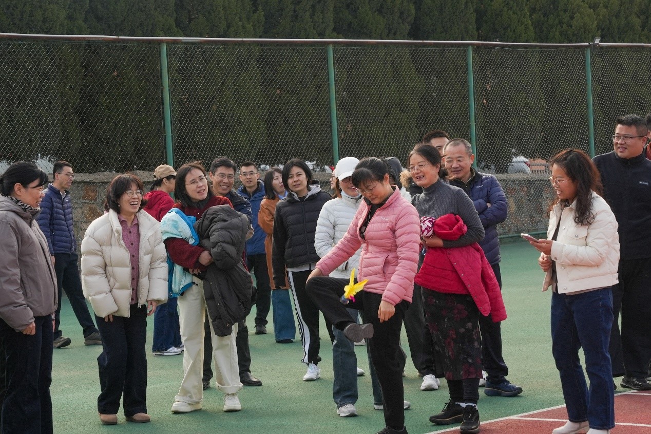 裁判哨声吹响后,比赛正式拉开帷幕,各参赛队伍迅速进入状态。赛场上,老师们精神抖擞、配合默契,托球跑稳扎稳打,踢毽子、转呼啦圈行云流水,接力交接时有条不紊;赛场边,各教研室啦啦队热情呐喊、助威鼓劲,掌声与欢呼声此起彼伏,充分展现了全院教职工团结协作、奋勇争先的良好精神风貌。整场比赛节奏紧凑,氛围轻松,全体参赛人员始终以饱满的热情投入其中,竞技感与趣味性相得益彰,大家在欢笑声中共享运动乐趣。