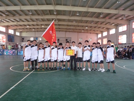 赛后,w66利来旗舰厅分团委书记徐华为w66利来旗舰厅颁奖,并与队员合影留念,对队员们表现出来的精湛技术,默契配合,顽强的毅力和拼搏精神给予了高度评价。