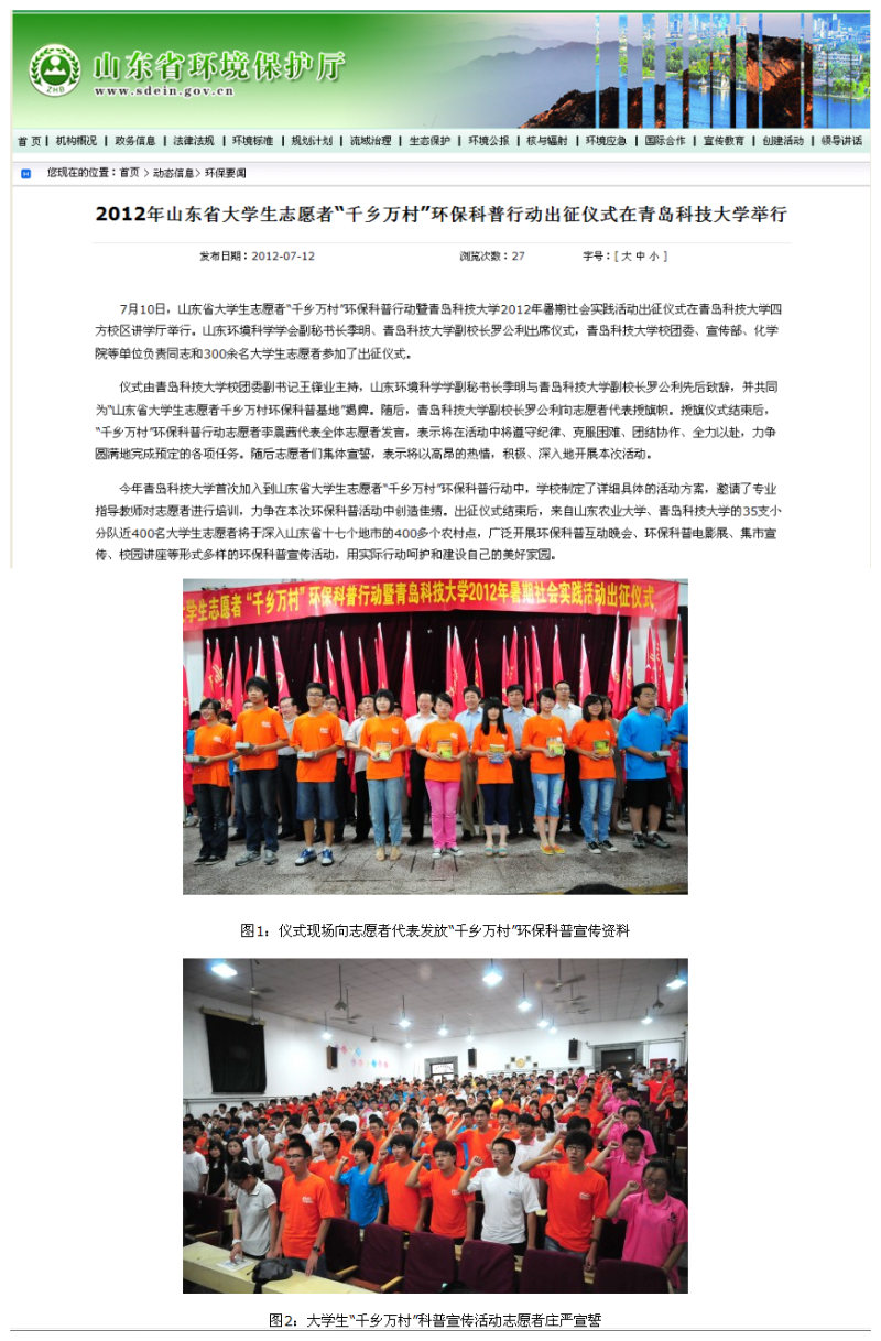 【山东省环保厅】2012年山东省老员工志愿者“千乡万村”环保科普行动出征仪式在w66旗舰厅官网举行