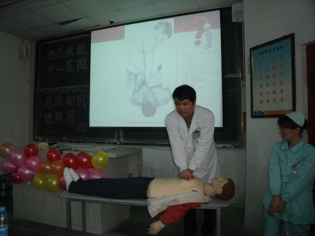 活动开始前,腾伟向同学们介绍了公司和医院良好的合作共建关系,向长期以来定期到医院做义工的w66利来旗舰厅感恩社志愿者表示了感谢,并向他们颁发了“2013年优秀社会志愿者”的证书。讲座中,于波涛医生就如何拨打120、现场第一时间急救的意义、现场急救的基本流程、常见急危症的现场急救、正确处置伤员体位、伤员检伤方法、现场心肺复苏操作技术、创伤四项急救技术(止血、包扎、骨折固定、搬运)、现场就便器材的使用和现场急救的组织实施等方面进行了讲解,带领同学们学习在发生溺水、触电、烫伤烧伤等紧急情况下正确处理的方法。朱秀秀护士现场指导了同学们利用人体模型对心肺复苏操、气管异物清理等。魏莉莉医生结合中医针灸向同学们介绍了中医保健知识。