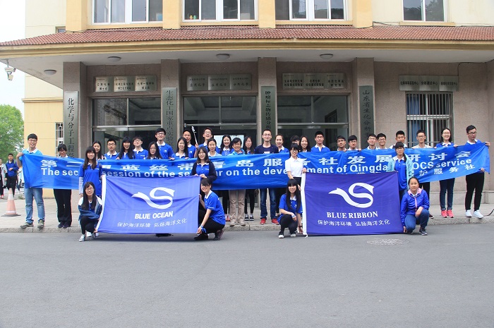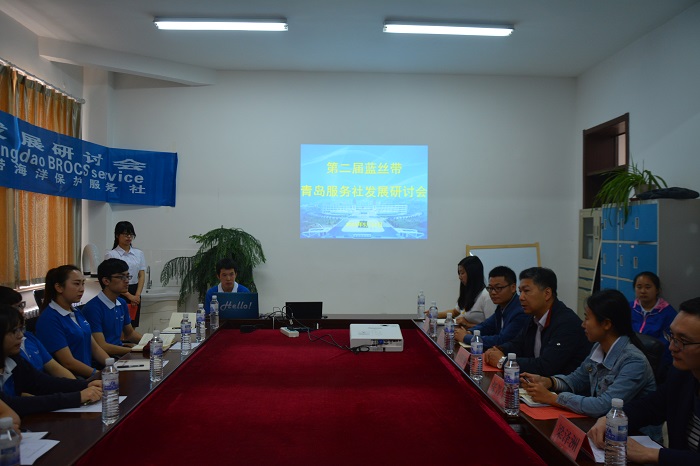 会上,7所驻青高校蓝丝带海洋保护协会成员代表结合本校服务社的经验和方法进行了交流发言。