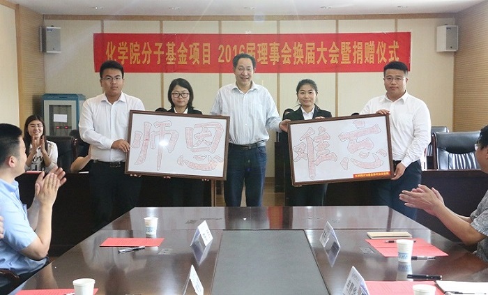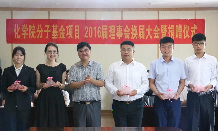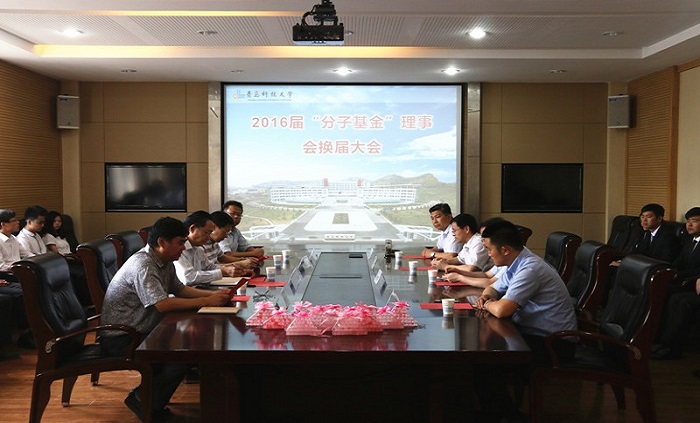 6月24日下午,w66利来旗舰厅“分子基金”项目2016届理事会换届大会暨捐赠仪式在四方校区一号行政楼第一会议室举行。副董事长、教育发展基金会理事长韦殿华,公司办公室副主任、教育发展基金会秘书长聂广明,公司党政领导、分团委全体老师以及w66利来旗舰厅2016届毕业生代表参加了仪式。仪式由公司党总支副书记孙晓刚主持。