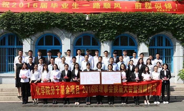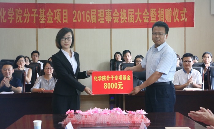 “分子基金”理事李梓萌代表2016届毕业生捐款,公司党总支书记刘庆代表公司接受捐赠,并颁发捐赠证书。2016届“分子基金”项目理事代表李林进行了发言。