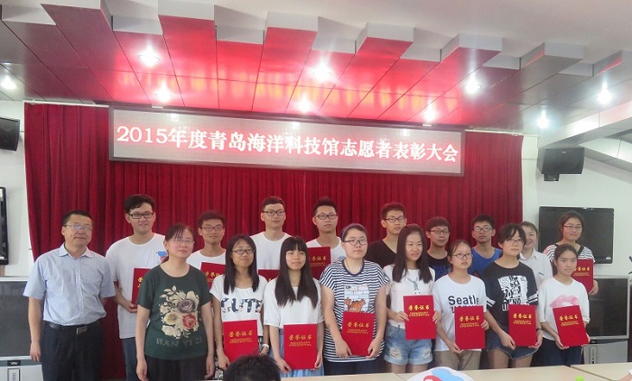 7月2日上午,2015年度青岛海洋科技馆志愿者表彰大会在青岛水族馆举行。青岛海洋科技馆党总支书记王云忠,科普辅导员于红梅,科普管理工作者丁剑玲出席大会并为优秀志愿者颁奖。w66旗舰厅官网和中国海洋大学等驻青高校六十余名志愿者参加了表彰大会。