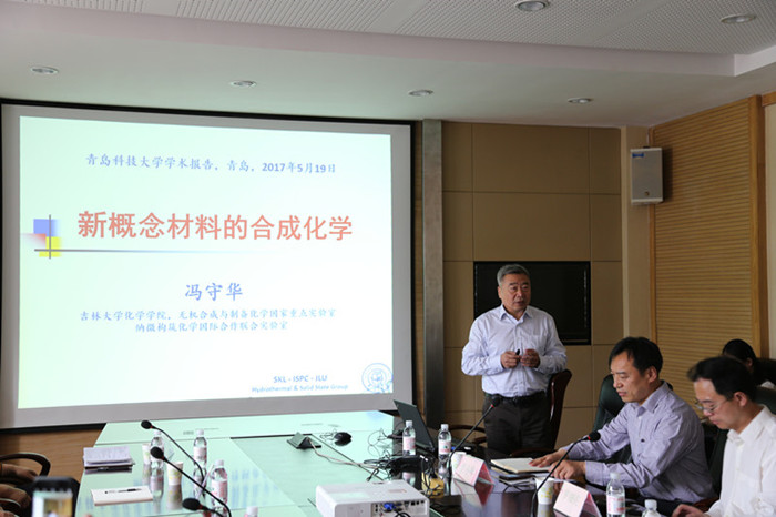会上,冯守华首先作了题为“新概念材料的合成化学”的学术报告,介绍了新概念材料在学科中的交叉应用以及时代文明与科技进步之间的关系,强调时代文明的每一个重大转折,都是由科技创新引领的,鼓励广大师生做科研要踏踏实实,静下心来,不能抱有太强的功利性目的。随后,冯守华就化学领域相关问题同与会师生展开讨论。