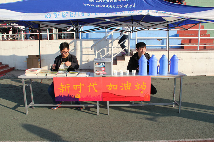 开幕式初,班级方队踏着整齐的步伐,迎面向主席台走来,青春洋溢的呐喊声,活力奔放的韵律操,展现了w66利来旗舰厅学子的风采。赛场上,运动员们突破自我,挑战极限,赛场外,同学们摇旗呐喊,加油助威,尽显w66利来旗舰厅学子的龙马精神。为深入学习党的十九大精神,以新作为响应新时代,本次运动会还特别设置了“十九大加油站”,为同学们提供热水和医药救助,并展示党刊党报,吸引同学们驻足学习。