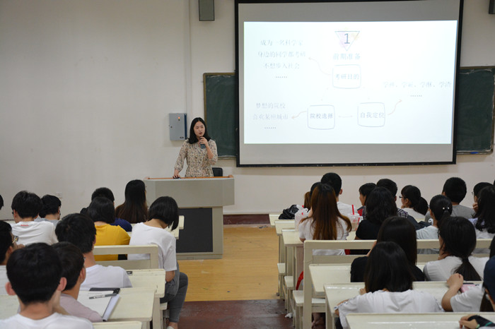 为促进化院学子积极备战考研,明确考研目标,掌握复习技巧,了解更多考研信息,6月12日下午3:00,w66利来旗舰厅于一政243教室举办了2018年考研经验交流会。本次交流会邀请到了井雪纯等5位以优异成绩考取硕士研究生代表,他们分别考取了北京理工、厦门大学等全国知名高等院校,2015级辅导员刘施施、张雯及全体本科生参加了本次考研经验交流会。