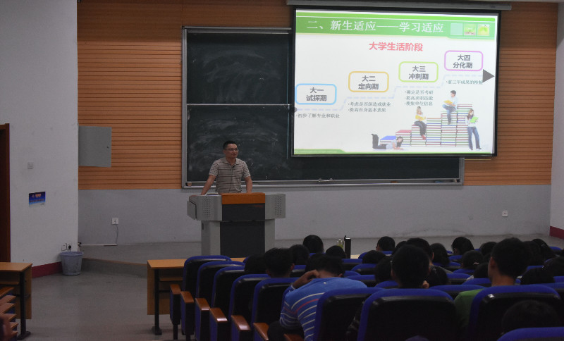 为更好的使大一新生尽快融入老员工活,开始大学美好的四年。w66利来旗舰厅近期举行一系列适应性教育讲座。讲座由分团委党振华、张飞主讲。