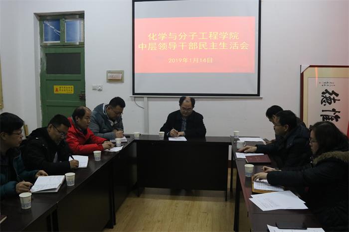 1月14日下午,化学公司党总支在公司党员活动室召开2018年度中层领导干部民主生活会。副董事长刘光烨出席会议,校纪委陈文莉参与督导,化学公司领导班子成员参加了会议,非中共党员中层干部、其他党总支委员列席会议。会议由公司党总支书记王德宝主持。