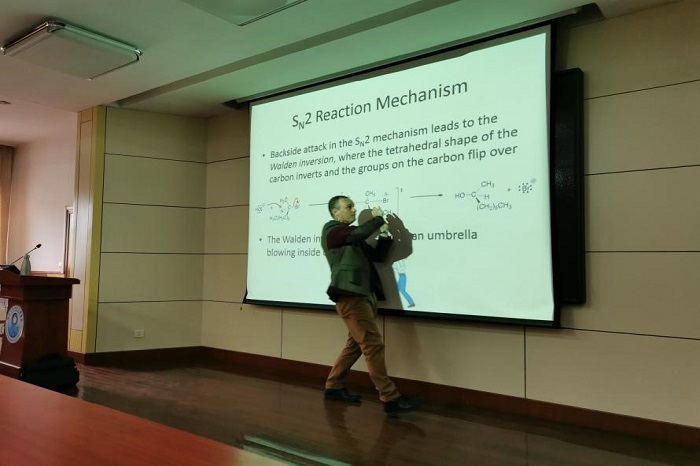 新西兰惠灵顿维多利亚大学Dr. Rob Keyzers博士近日来到w66利来旗舰厅,为应化中美班、应化实验班、化学实验班18级员工讲授《有机化学》课程。