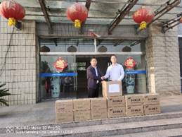 本次走访公司收到员工2009届无机化学研究生周晶个人捐赠一次性医用口罩1000支,医用酒精和84消毒液各6箱。