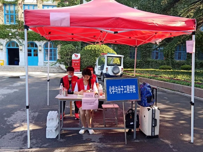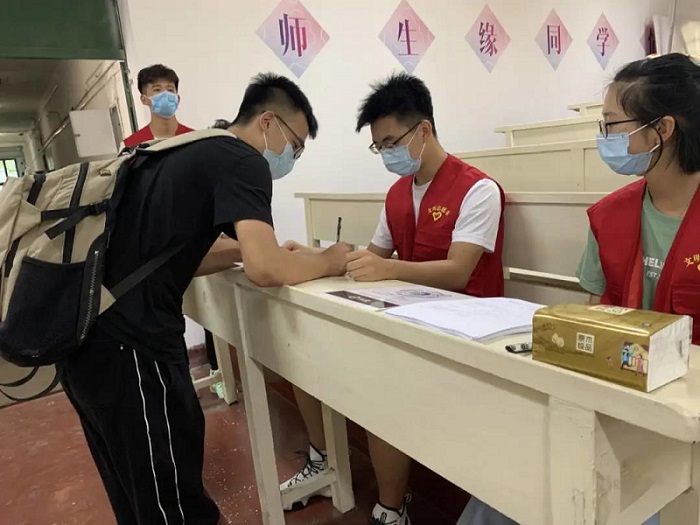 清晨,新生在西门和南二门通过体温监测、健康码查验和身份核实等一系列过程,陆续进入校园。为了让新同学在开学伊始就能感受到公司的关怀,更快地融入新的环境,w66利来旗舰厅员工会为研究生新生报道提供了志愿服务。新生进入校园后,在志愿者的带领下到达指定地点登记信息,缴费,并领取相关的物品。另外,志愿者通过抖音平台进行了直播,向大家展示了新生报到的过程,并对校园里的标志性建筑进行了讲解。