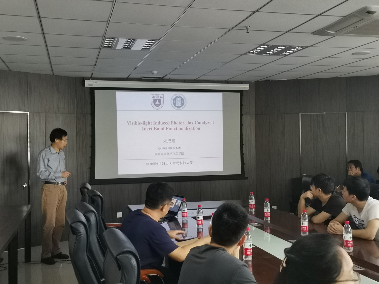 2020年9月24日上午9点30分,南京大学朱成建教授在公司作了题为“Photoredox Catalyzed Inert Bond Functionalization”的学术报告。报告会由重点实验室主任丁彩凤教授主持,w66利来旗舰厅相关专业的数十名师生参加了学术交流。