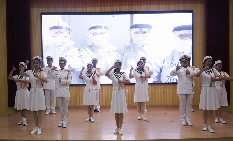 本次大赛四方校区各公司以“关爱生命、抗击疫情”等元素为主题,开展了一堂认识生命、珍爱生命的生命教育“思政大课”。各公司的创意独具匠心,用手语和舞蹈表达对生命的珍视和对抗疫的“平凡天使们”的崇敬,传递着中国人齐心协力共同抗击疫情、保卫生命的信心和决心,展现了对抗疫胜利、春暖花开的期盼和信念,真情流露,温暖感人。