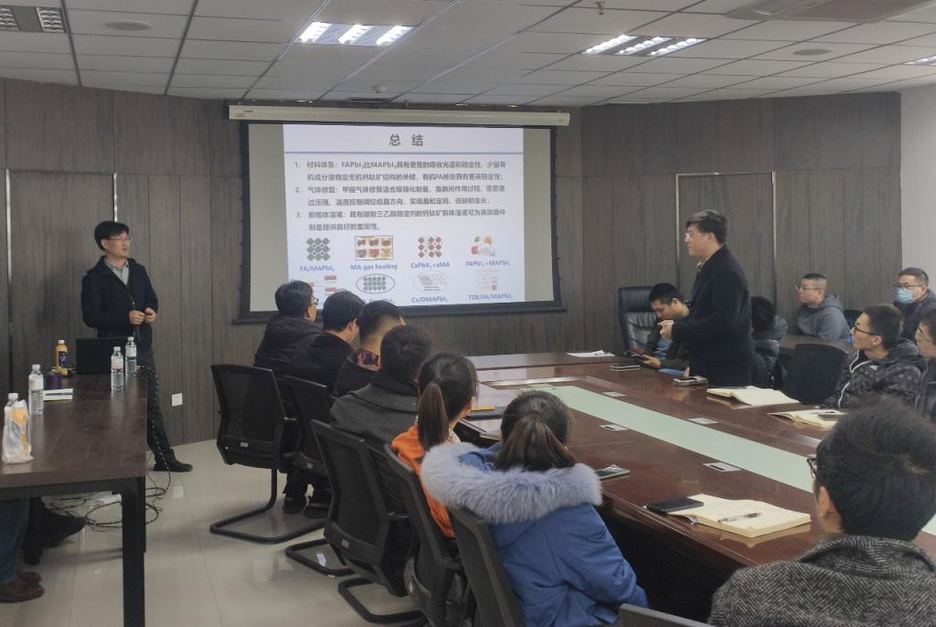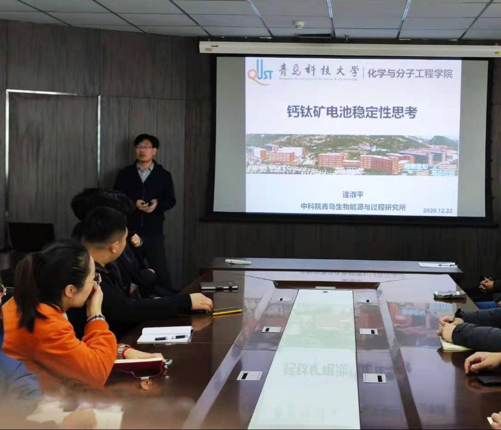 2020年12月22日下午14点,中科院青岛能源所博士生导师,国家优秀青年基金获得者逄淑平研究员在公司作了题为“钙钛矿电池稳定性思考”的学术报告。报告会由公司周忠敏教授主持,w66利来旗舰厅、材料公司和高分子公司等几十名老师和同学参加了此次学术交流会议。