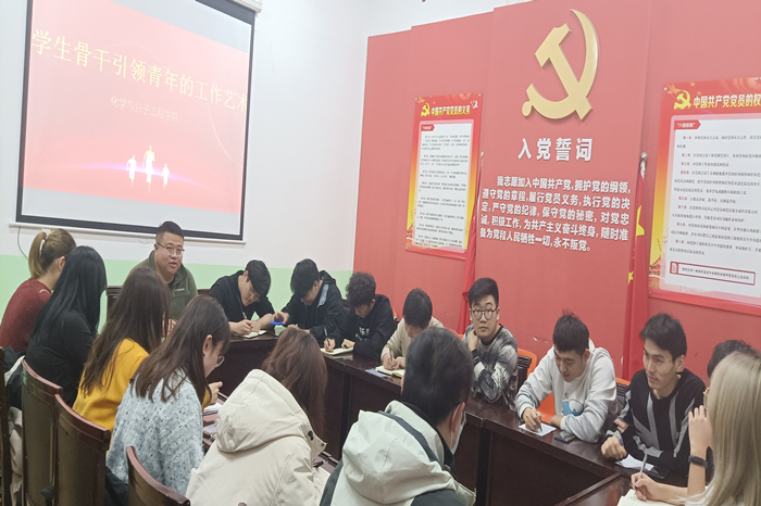 会上信连涛老师向员工骨干提出了“我们是谁”“我们为什么能成为员工骨干”“我们怎么做好员工骨干”等问题,这一系列问题引发了在场同学们的思考阐述了作为一名员工骨干如何保持和增强对青年的影响力。接着,信连涛老师结合自己的员工干部工作和辅导员工作,从多个方面阐述了员工骨干引领青年的工作艺术。信连涛老师要求同学们认真思考会上的问题,并于实际工作相结合,认真做好每一份工作。