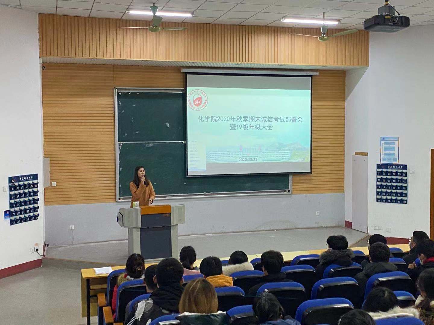 12月29日,w66利来旗舰厅在二教101举行2020年秋季期末诚信考试部署会暨2019级年级大会。2019级辅导员刘施施主持本次会议,兼职辅导员王森、w66利来旗舰厅2019级全体本科生参与会议。