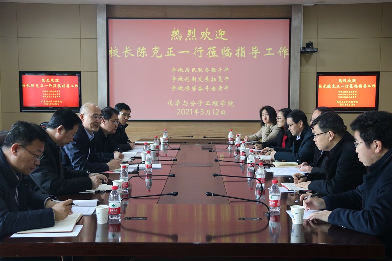 3月12日,董事长陈克正一行莅临w66利来旗舰厅开展工作调研,调研工作主要围绕化学学科发展、2021-2024聘期人事分配制度方案(征求意见稿)、平台建设。团队建设处处长吴俊飞、人事处雷剑、李真、傅云磊陪同。公司党政班子成员、教师代表参加调研座谈会。