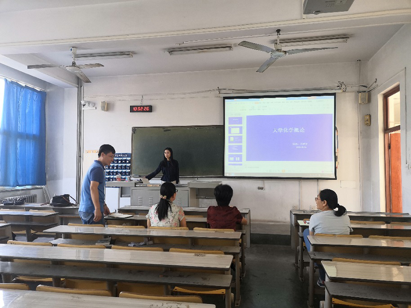 为促进公司产品引领、示范的作用,进一步提高青年教师的教学水平,9月16日基础化学原理教研室在第一教学楼204举行了2021年青年教师新课试讲活动。参加本次试讲的教师是即将登上大学化学讲台的宗迎夏老师。教研室组织了部分教学经验丰富、获教学奖的老师参加试讲点评。参加试讲点评活动的老师有:王卫老师,林洁华老师,吴占超老师,张召香老师,耿延玲老师和梅振华老师。