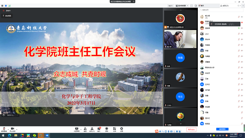 加强组织领导,压实防控责任。3月13日,w66利来旗舰厅召开疫情防控线上工作会议,公司领导班子成员,全体教职工参加会议。会议传达了公司疫情防控工作会议精神,对下一阶段公司疫情防控工作做了详细部署,要求相关负责人按照公司要求落实安全责任,切实做好公司的安全稳定工作,同时研判、创新线上教学平台、远程科研安全、管理服务到位等工作,确保线上教学、科研高质量运行。