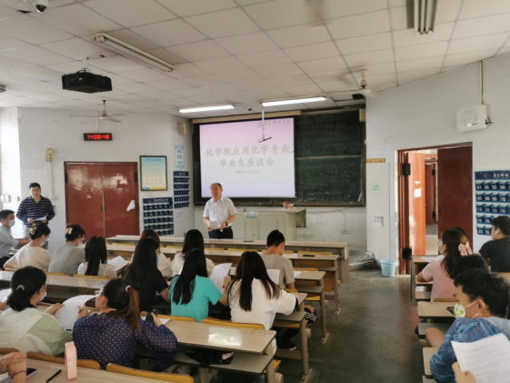 5月31日下午14:00,w66利来旗舰厅2022届应用化学专业毕业生座谈会在四方校区1教202召开,公司副经理高洪涛、应用化学教研室主任李东祥、分团委就业指导老师闵繁盛、应用化学教研室教师吴中涛及应用化学181-185班毕业生参加。本次座谈会由李东祥主持。
