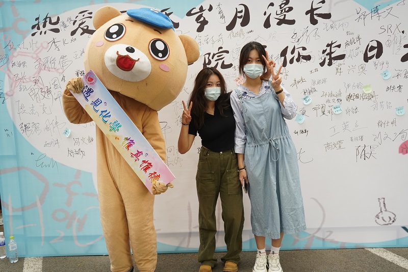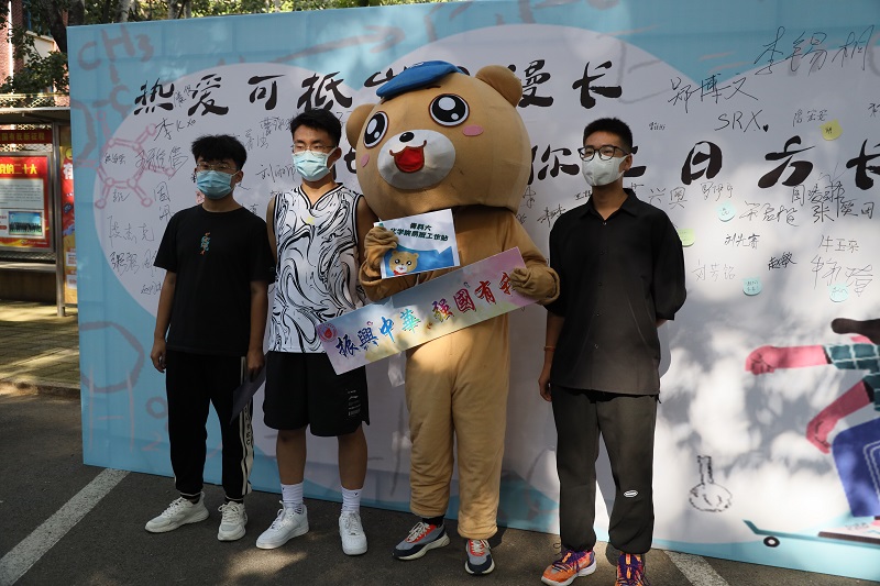 迎新现场设置签名板特色拍照区域,上面“化院与你来日方长”的标语寄托公司对新生大学四年的期待,现场的员工们纷纷在签名板上写下自己的姓名及对未来的期待,与承载着满满祝福的喷绘合影留念。