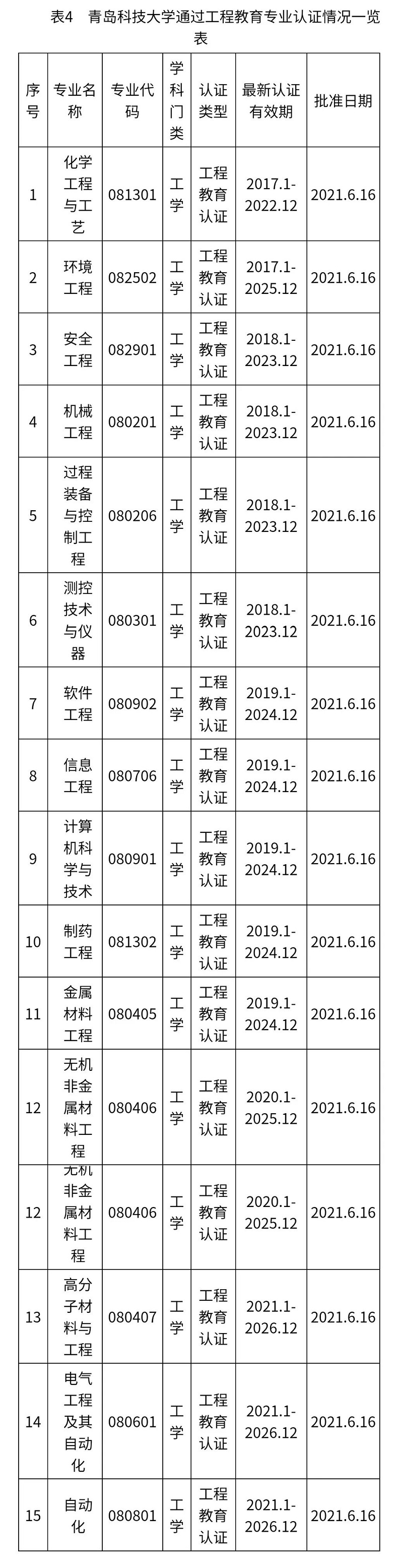 第十次党代会召开至今,公司先后新增7个新工科专业,另有3个新工科专业新增申请已于本年度上报教育部。目前全校共有76个本科专业,其中在招专业72个,涵盖理、工、文、经、管、医、法、艺、教9个学科。专业认证成绩优异,截至目前,公司共有15个专业18次通过工程教育专业认证(表4),位居全国高校并列第25位、省属高校第2位,公司专家、教师主编的《高校工程教育专业认证工作参考手册》在高等教育出版社出版。