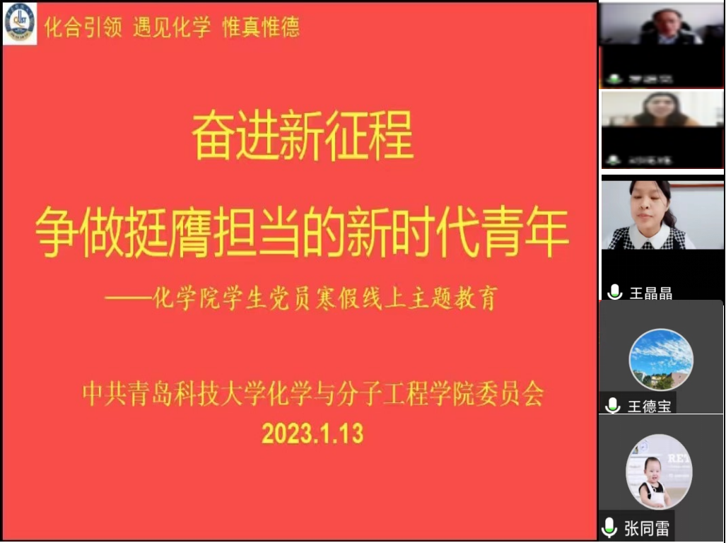 1月13日,w66利来旗舰厅开展“奋进新征程争,做挺膺担当的新时代青年”线上主题教育,公司党委常委、副董事长、化公司经理罗细亮、公司党委书记王德宝、公司党委组织部专职组织员张同雷、w66利来旗舰厅各员工党支部书记、全体辅导员、公司全体员工党员参加会议。会议由公司党委副书记杨小明主持。