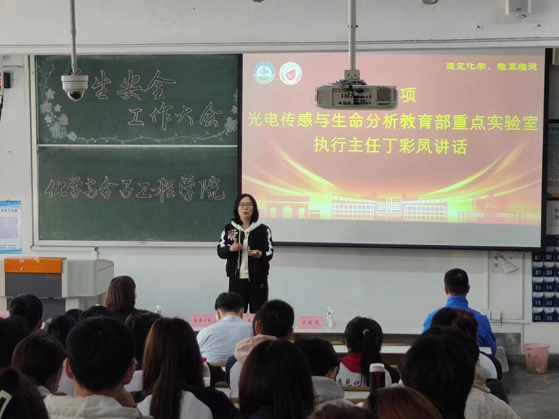 丁彩凤就实验室安全工作向同学们进行说明。丁彩凤指出:实验室安全意识、实验室安全规范知识、实验室安全操作是实验室安全的三个法宝。丁彩凤重点强调了开展实验务必了解所用药品的理化性质、仪器设备的工作原理等。最后,丁彩凤指出,无人值守开展实验是实验室安全事故的头号杀手,公司公司将加大力度对于无人值守的检查力度并进行严肃处理。