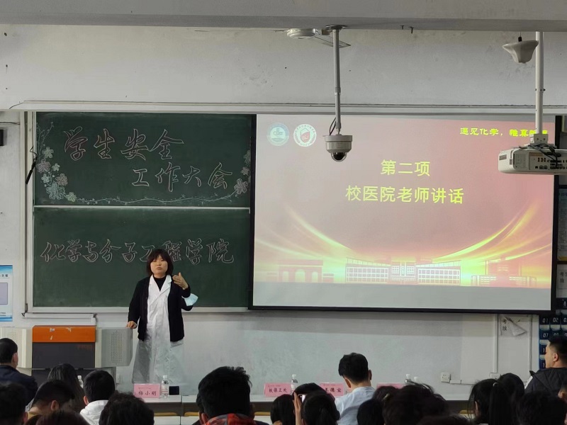 仇立峰向同学们讲解了消防安全的“四懂四会”“四个能力”“五个第一”、灭火器的摆放位置及使用方法等(四懂:懂得岗位火灾的危险性、懂得预防火灾的措施、懂得扑救火灾的方法、懂得逃生疏散的方法。四会:会使用消防器材、会报火警、会扑救初起火灾、会组织疏散逃生。四个能力:提高社会单位检查消除火灾隐患的能力、提高社会单位组织扑救初起火灾的能力、提高社会单位组织人员疏散逃生的能力、提高社会单位消防宣传教育培训能力。五个第一:第一时间发现火情、第一时间报警、第一时间扑救初期火灾、第一时间启动消防设备、第一时间组织人员疏散)。纪永丽就甲流、诺如病毒、结核等几种常见传染病的症状、预防手段及治疗方法进行了科普,希望同学们能够常通风、勤洗手、戴口罩。