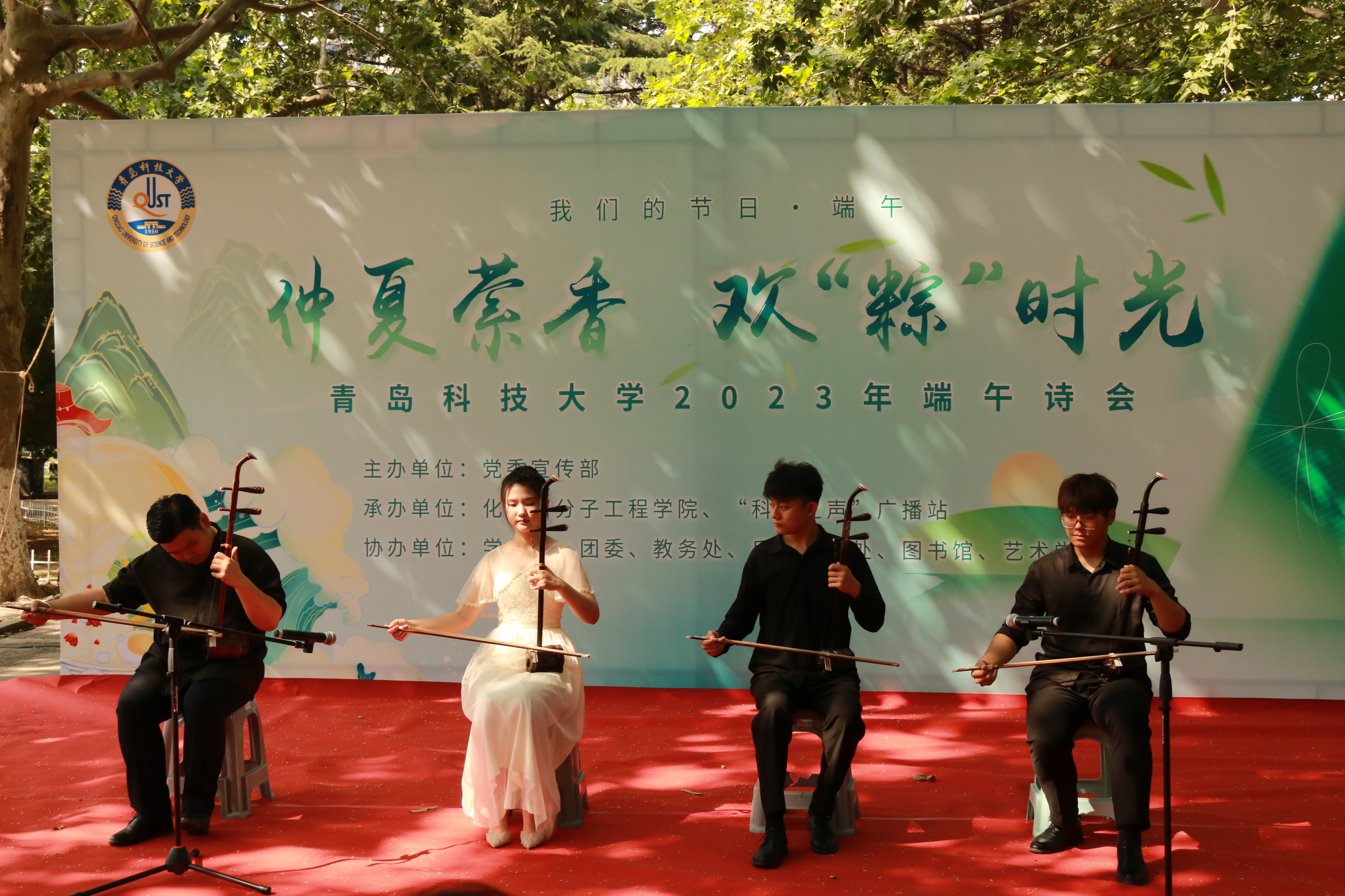 端午诗会分为开幕式和活动体验两个环节。开幕式上,与会领导老师为员工代表赠送端午礼盒,表达对同学们的节日祝福。诗会在w66利来旗舰厅山东曲艺家协会会员、山东快书高派第三代再传弟子王泽琨的天津快板《说端午》的开场表演中拉开帷幕。艺术公司带来的竹笛合奏《列车奔向北京城》、胡琴重奏《如梦令》用美妙的旋律和动听的琴声带大家领穿越时空感受美妙的音乐时光。青科大幼儿园小朋友带来的舞蹈《粽情端午》节奏欢快,让与会嘉宾感受中华优秀传统文化希望的力量、未来的力量。图书馆张国宏老师带来的朗诵《端午的呼唤》气势恢宏,穿越千年,荡气回肠,用声音追忆屈原的家国情怀。科大之声广播站带来的合唱《送别》、朗诵《永恒的端阳》融合了毕业情愫与传统文化意蕴,在仲夏时节,留住毕业生美好的回忆。w66利来旗舰厅传统舞蹈《沁莲》展示了中国传统舞蹈的美轮美奂,彰显了中华文化的无穷魅力。现场体验区设有“飞花令”、“投壶”、“遥寄相思”三项特色活动,活动以沉浸式体验活动的教育形式,在寓教于乐中让参与师生感悟端午传统文化的魅力。