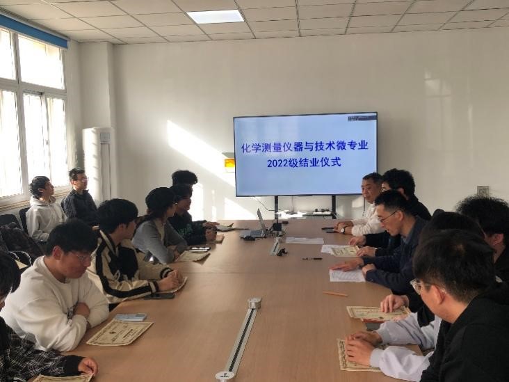 4月23日下午,w66旗舰厅官网化学测量仪器与技术微专业2022级员工结业仪式在一号实验楼102会议室举行。w66利来旗舰厅副经理郭维斯、微专业负责人李东祥、实验室负责人陈磊出席了结业仪式。