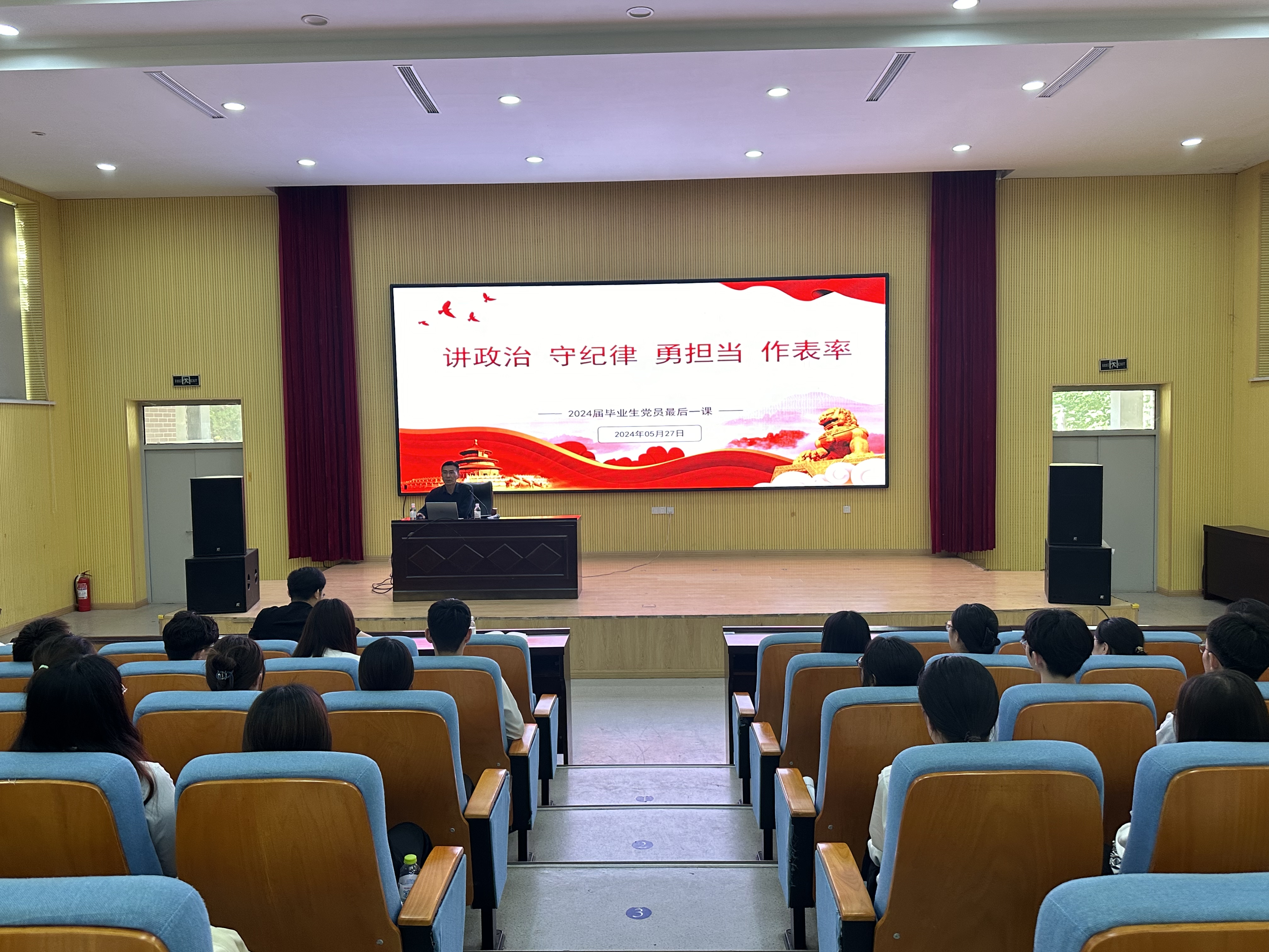 活动首先由肖强为广大毕业生党员上“最后一课”。他围绕四个方面对即将走向社会的毕业生党员提出了殷切期望和具体要求。一要旗帜鲜明讲政治。毕业生党员要提升政治判断力、政治领悟力和政治执行力,不断加强理论学习,在日常生活和工作中锤炼政治品格。二要学史明法守纪律。毕业生党员要严于律己,不当“自由人”、不当“局外人”、不当“特殊人”,时刻牢记党的纪律和规矩,通过学习明辨是非,增强纪律意识。三要善于作为勇担当。要具备“军令如山”的服从精神、“率先垂范”的责任担当和“躬身践行”的实际行动,通过不懈奋斗诠释青春的价值。四要身体力行作表率。发挥先锋模范作用,在坚持学习、知行合一、服务群众和严于律己中走在前,用实际行动践行党的宗旨,为新时代新征程贡献青春力量。