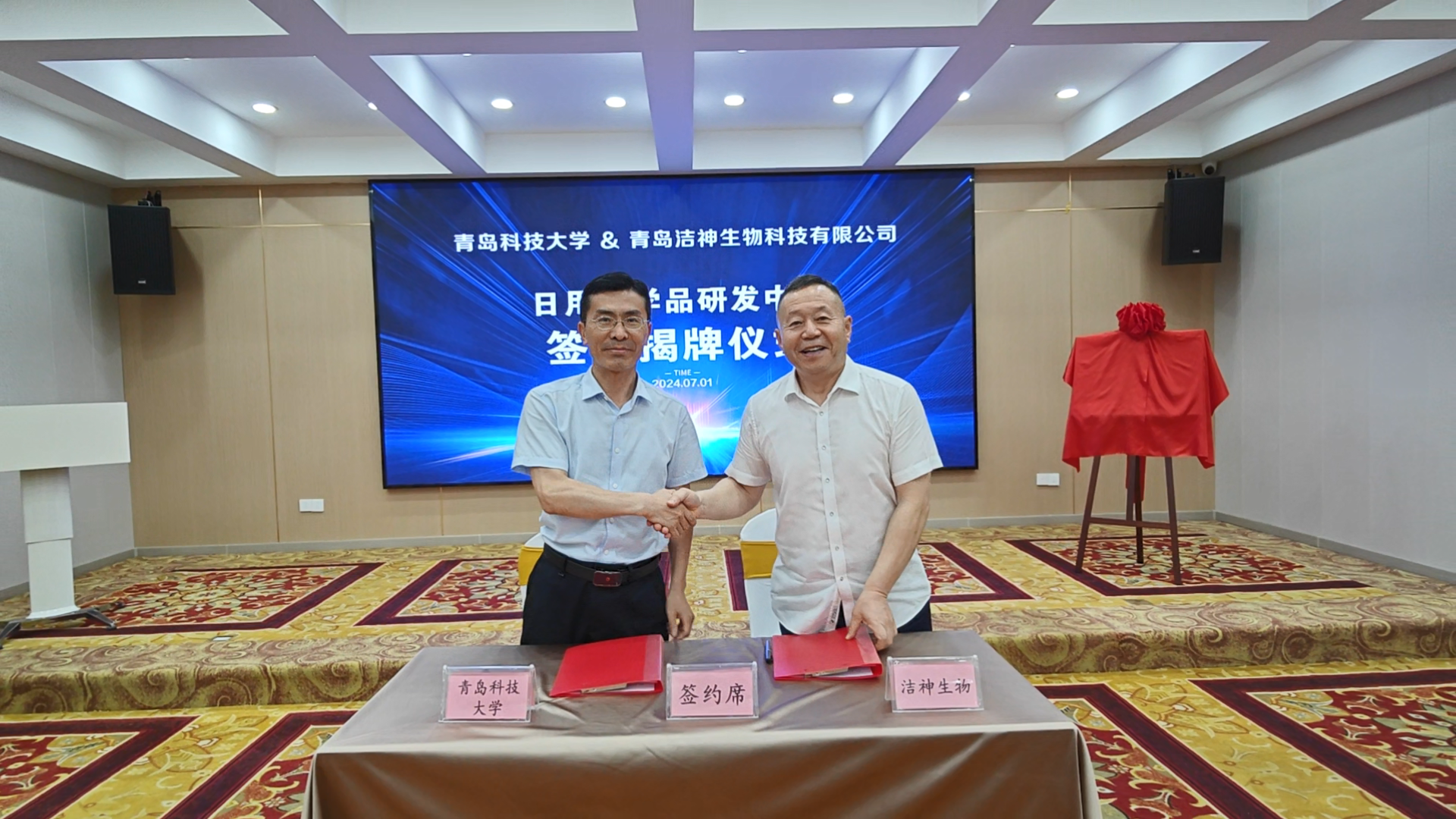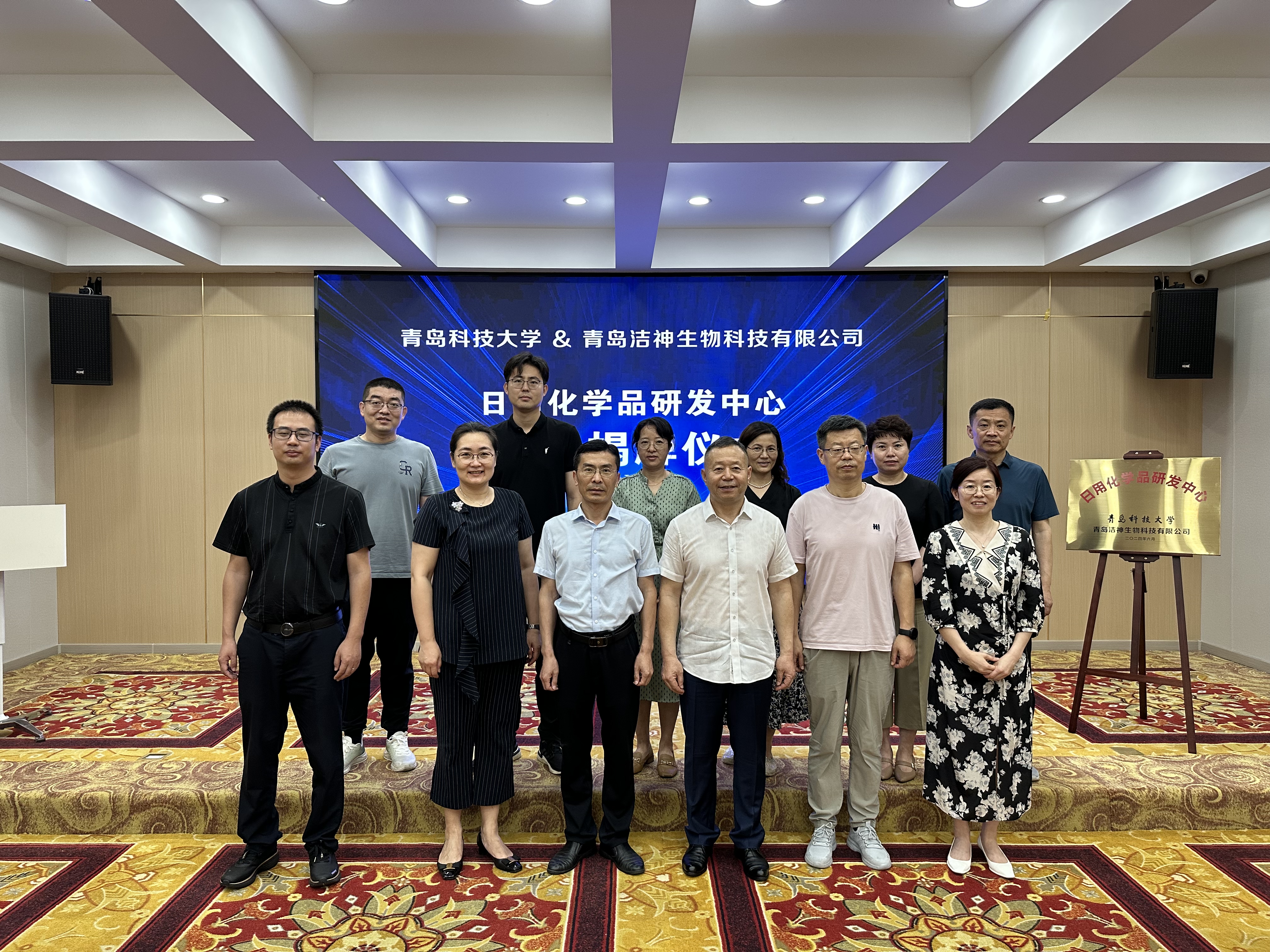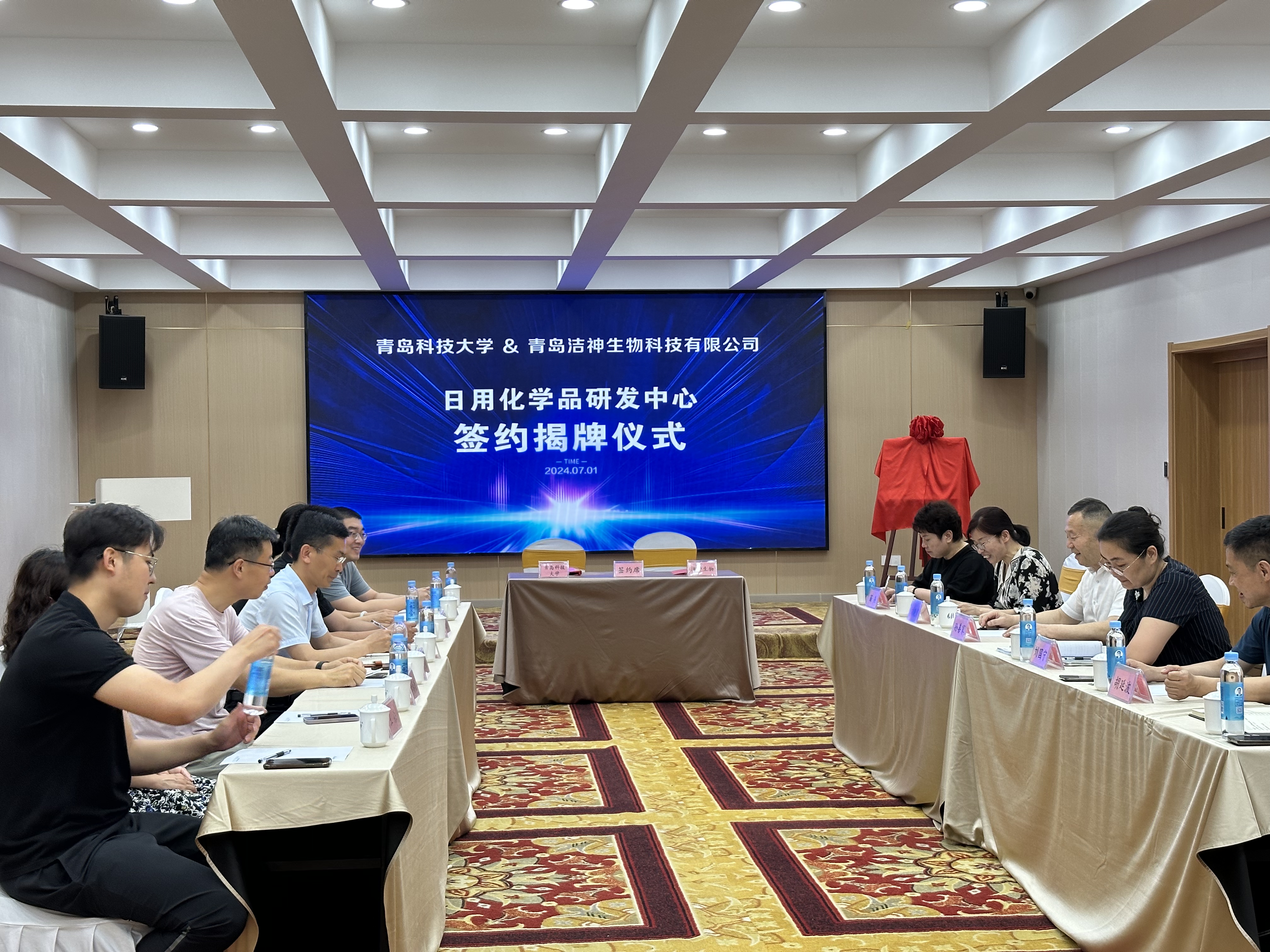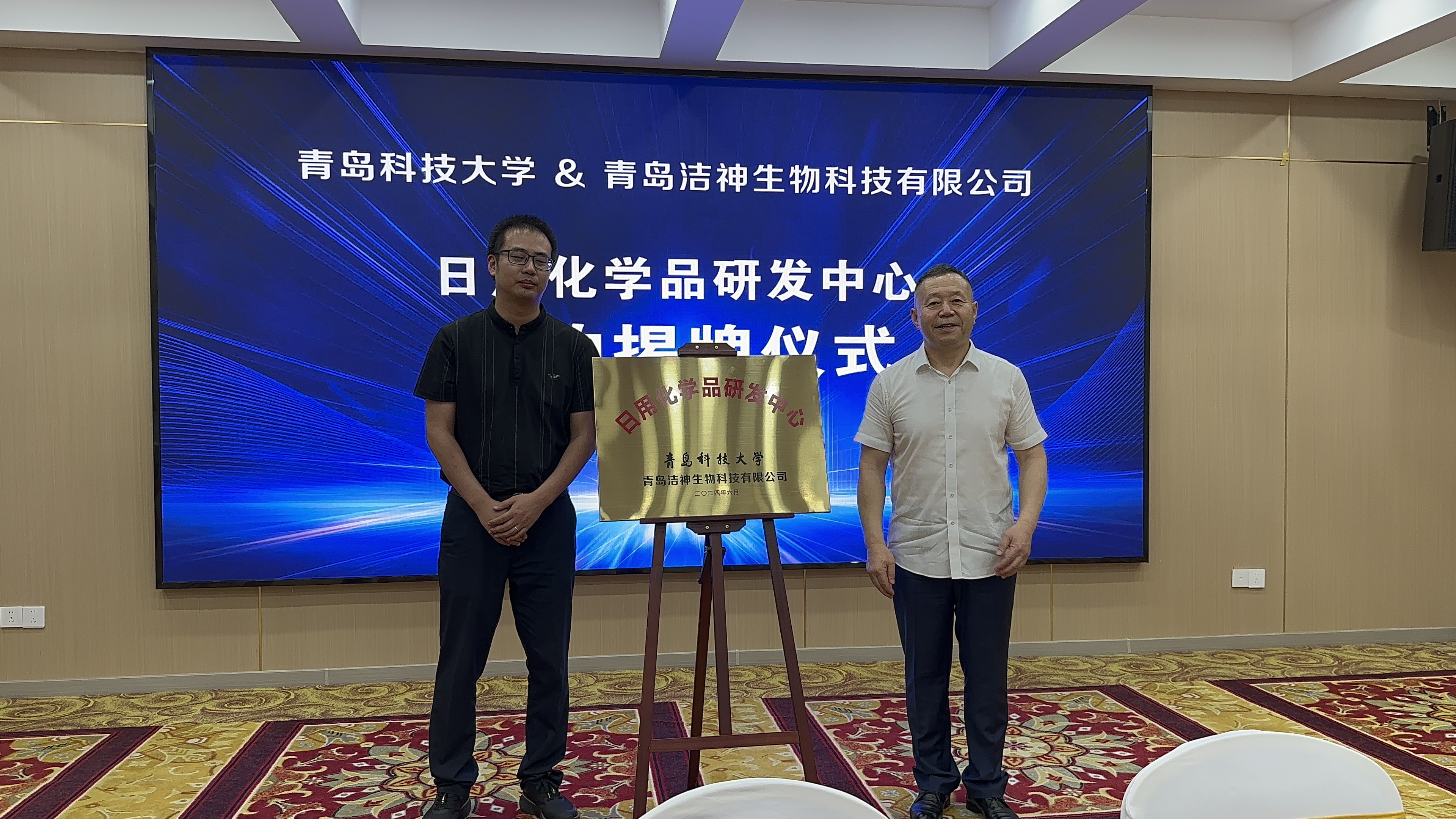 7月1日,w66利来旗舰厅与青岛洁神生物科技有限公司日用化学品研发中心签约揭牌仪式在洁神智慧管理园区举行,公司党委书记肖强、常务副经理汪恕欣、青岛洁神集团董事长孙善家、青岛洁神生物科技有限公司总经理刘晓静、李沧区振华路街道党委书记刘国宁、公司副经理胡志强、教师代表、辅导员代表、青岛洁神生物科技有限公司相关负责人、李沧区振华路街道相关工作人员等10余人参加活动。