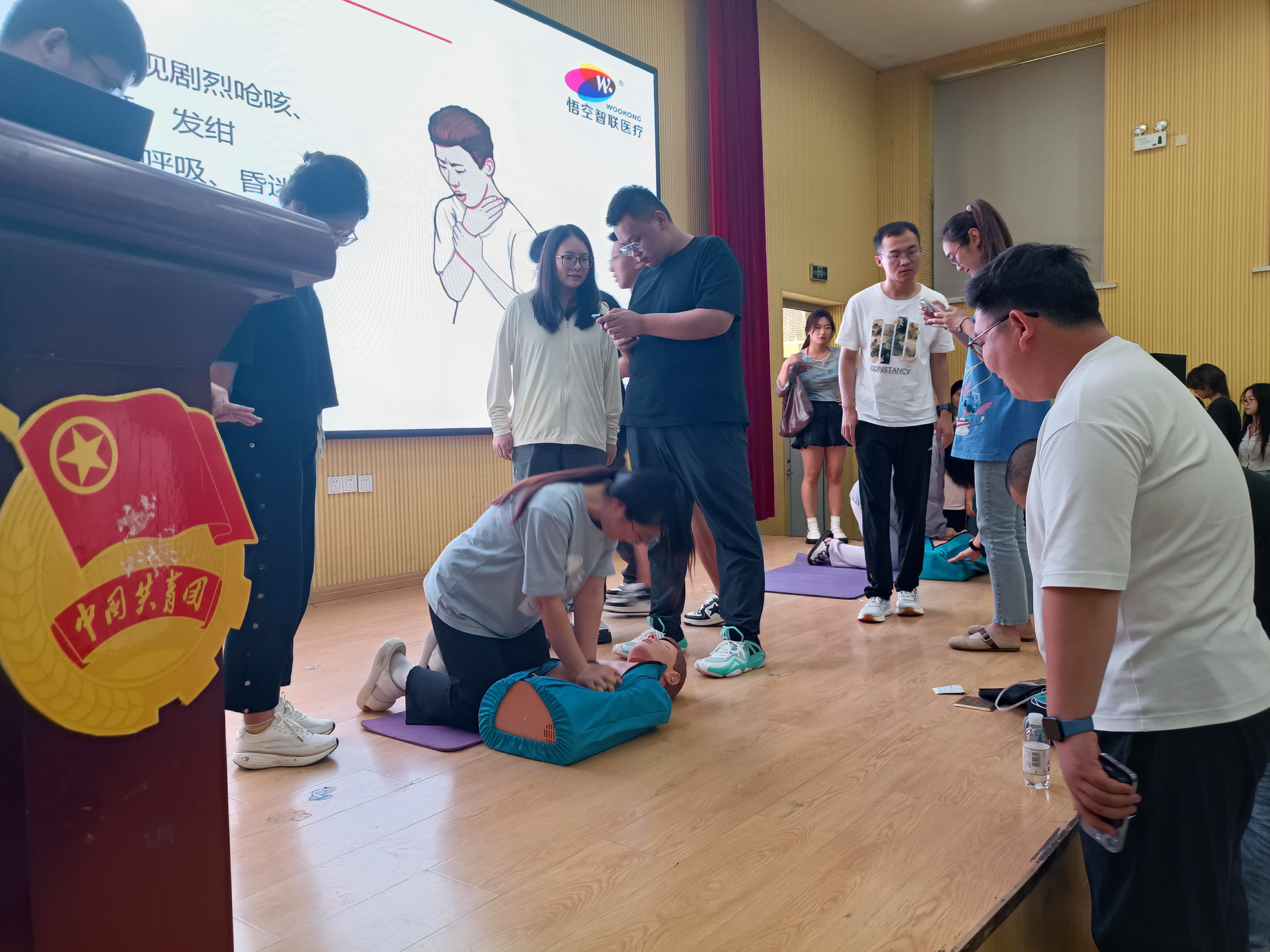 在讲解结束后,参与课程的师生分为两组,利用模拟假人,分别进行了“单人心肺复苏”的整个急救流程实操练习。讲师们悉心指导每位师生的操作,对不规范的动作进行了耐心的示范和纠正,经过练习和实操,参与培训的师生全部顺利通过了考核。