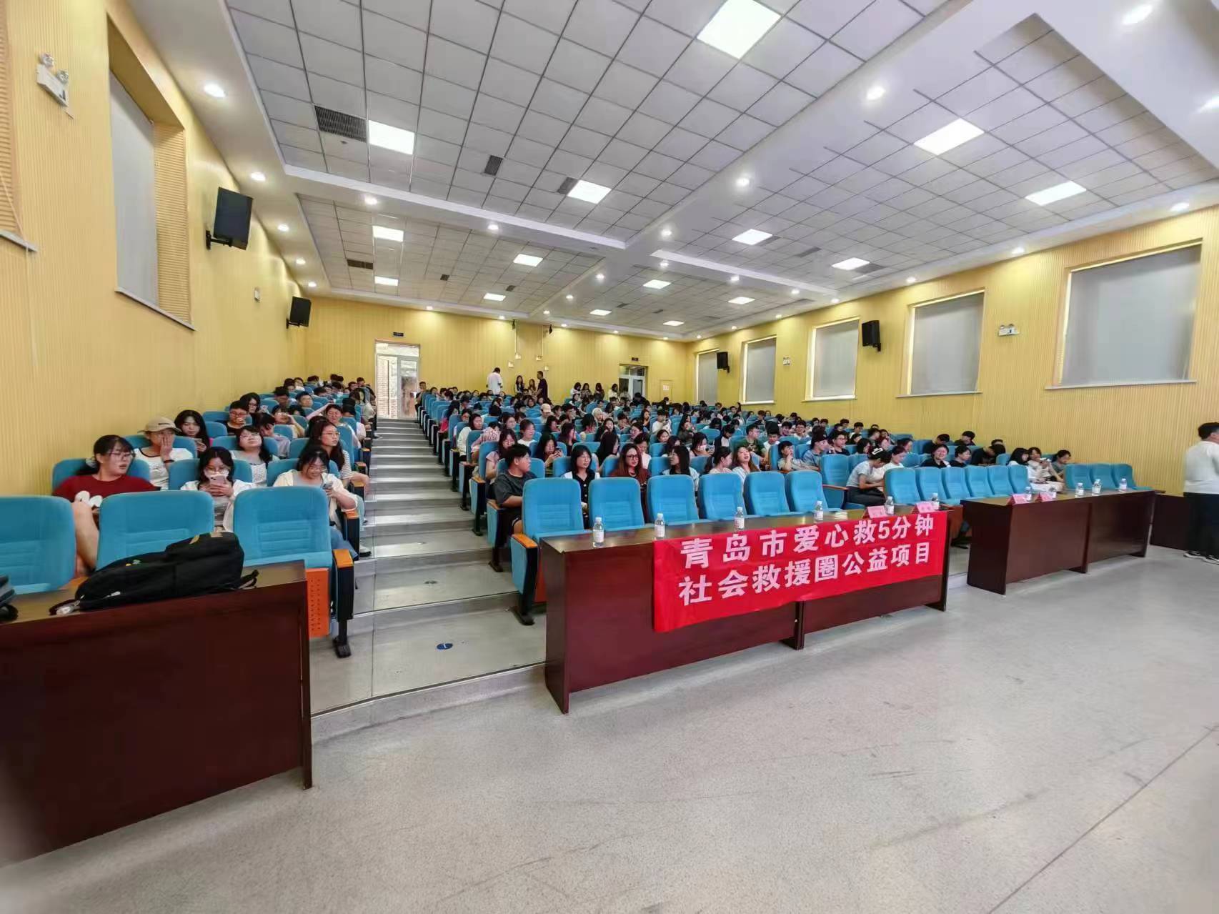 为提高同学的自救互救能力和突发事件应对能力,7月10日w66利来旗舰厅联合青岛市市北区双山社区邀请青岛市卫生健康委员会专业人员,在四方校区讲学厅举行AED急救培训。