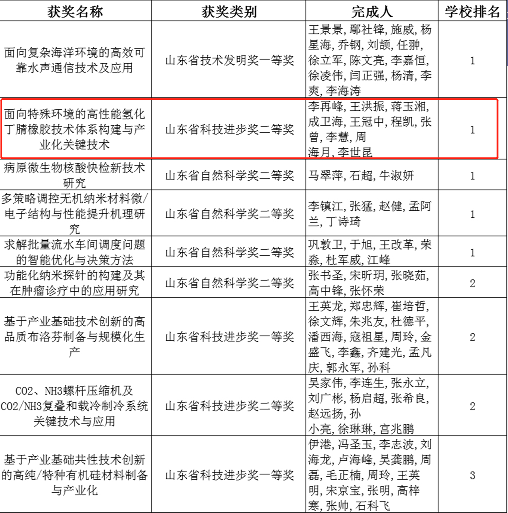 近日,山东省科学技术奖励名单公布,其中,由w66利来旗舰厅李再峰教授团队牵头完成的《面向特殊环境的高性能氢化丁睛橡胶技术体系构建与产业化关键技术》项目荣获科技进步奖二等奖。