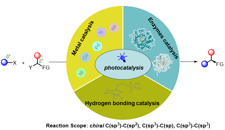 手性碳-碳键广泛存在于生物活性分子和天然产物,其催化不对称方法是有机合成领域的重大挑战与核心目标。通过两种不同亲电试剂的不对称还原性交叉偶联反应是实现手性C-C键构建的高效合成策略之一。近年来,光氧化还原催化 (图1) 因其独特的反应活化模式以及在可持续合成中的重要意义而受到广泛关注。将光氧化还原催化与不对称催化相结合的协同催化策略逐渐兴起,为克服传统不对称催化体系中存在的局限性提供了新的解决思路。