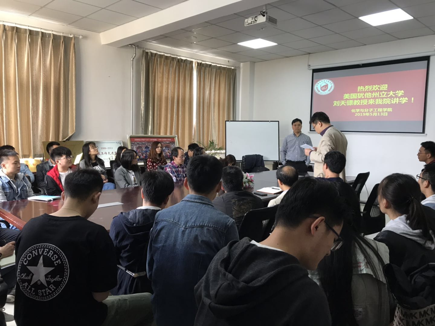 2019年5月13日上午九点,美国犹他州立大学刘天骠教授来公司访问,并在一号实验楼302会议室作了题为“Developing New Battery Chemistries for Energy Storage”的学术报告。报告会由w66利来旗舰厅副经理胡志强教授主持,w66利来旗舰厅、高分子公司等相关公司和专业的数十名师生听取了报告,并进行了积极交流。