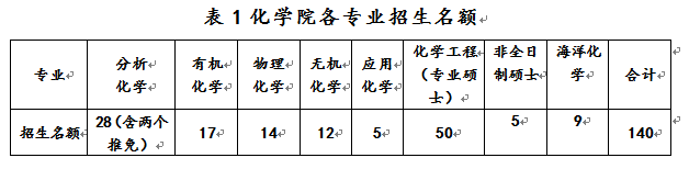 2019年,w66利来旗舰厅招收调剂的专业包括:物理化学(学硕)、无机化学(学硕)、应用化学(学硕)、海洋化学(学硕)和化学工程(专硕,含全日制和非全日制)。第一志愿报考化学、化学工程专业及相近专业,且符合调剂要求的考生可申请向公司调剂。