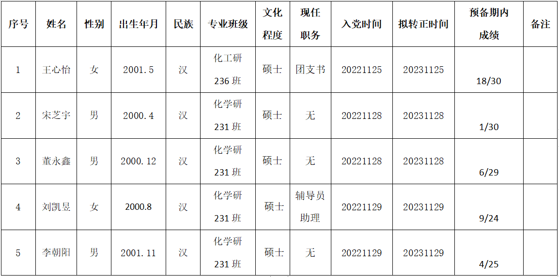 经公司党委研究生第一支部委员会研究,拟将王心怡等同志转为中共正式党员,现将有关情况予以公示。