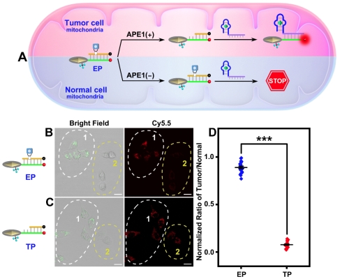 图1近红外光和内源性APE1酶触发的等离子体天线用于亚细胞水平肿瘤细胞特异性分子成像示意图。图片来源:Chem. Sci.